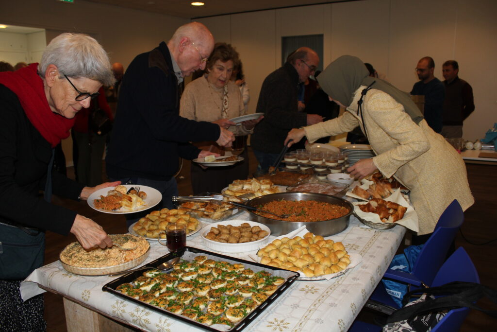 De Turkse deelnemers aan het Taalcafé (Eemnes en Laren) wilden de vrijwilligers van Goede Buren Eemnes en het Taalcafé Laren bedanken voor hun inzet. Door de hulp, die zij krijgen in het Taalcafé, voelen zij zich welkom in Nederland en dankbaar voor de hulp, die zij krijgen bij het begrijpen van het Nederlands en de Nederlandse cultuur. Een groep van zo’n 35 vrijwilligers liet zich trakteren op een uitgebreide en heerlijke lunch in De Wel in Eemnes. Zeer geslaagd. Bedankt.