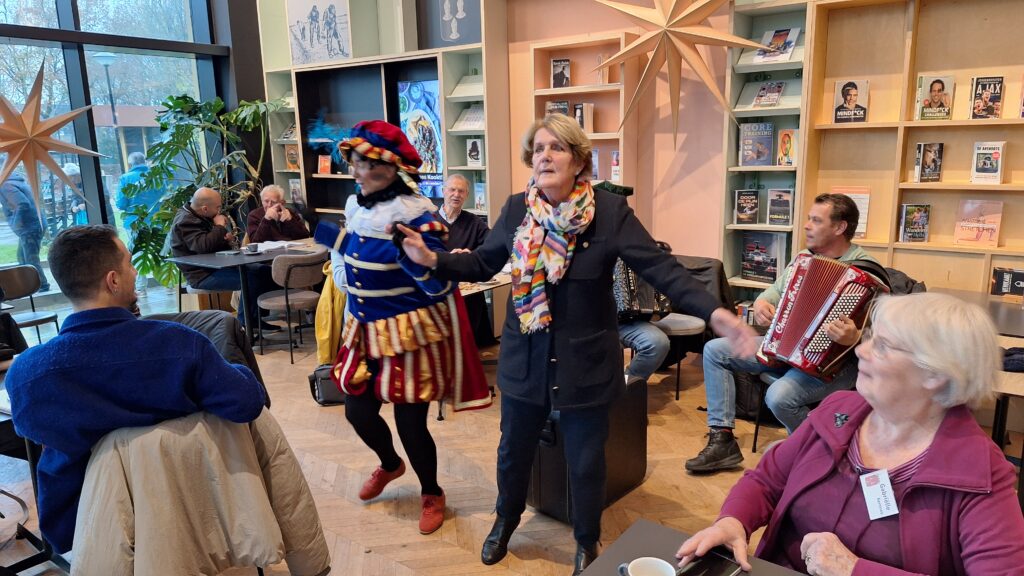 Het was weer een dolle boel bij het Taalcafé. Sinterklaas kwam eindelijk weer eens langs. Hij vond dat hij al een lange tijd, zo ongeveer een jaar, niet was geweest en het dus wel weer tijd werd voor een bezoekje. Sint en zijn twee Pieten, Piet Angelo en Piet Gerardo maakten er onder muzikale begeleiding van twee accordeonisten een leuk feestje van. Diverse deelnemers aan het Taalcafé werden in het zonnetje gezet.