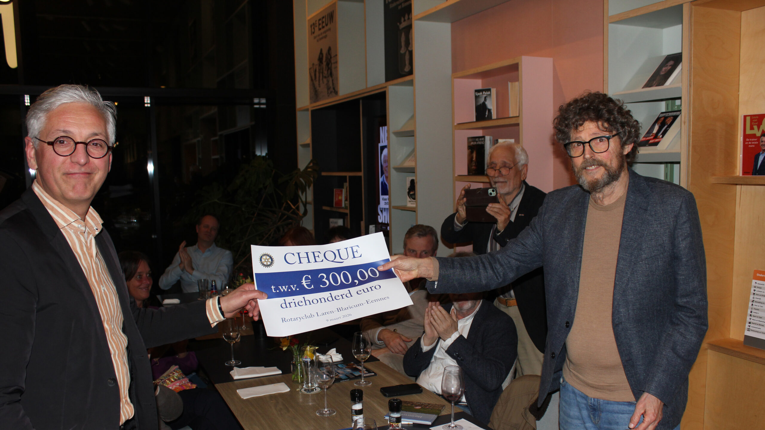 Rotary Laren-Blaricum breidt haar werkgebied uit naar Eemnes en heet voortaan: Rotary Laren Blaricum Eemnes. Tijdens een feestelijke bijeenkomst van de Rotary in het Huis van Eemnes krijgen de aanwezigen informatie over Eemnes en ook over Goede Buren Eemnes. Door Michael Klok van de Rotary wordt een cheque van €300 overhandigd aan Gerard Beentjes, bestuurslid van de Stichting Goede Buren Eemnes. Met deze bijdrage ondersteunt Rotary een bijzonder initiatief: een toneelvoorstelling, die door een vluchteling zelf geschreven is en gespeeld gaat worden door statushouders en door spelers van de Toneelvereniging Deo et Arti. Het belooft een project te worden dat taal, cultuur en ontmoeting op een inspirerende manier samenbrengt.